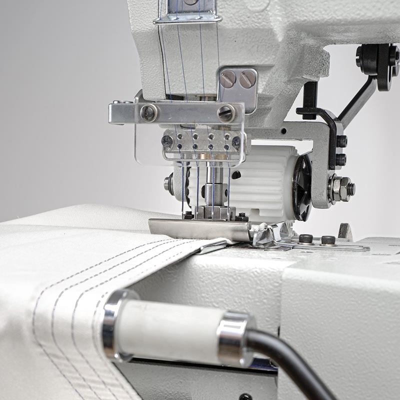 This Machine is dedicated first of all to sew elastic tape in dreses and pants and it’s perfect for knit fabric sewing. Chainstitch has drop feed and puller. This solution quarantees best quality of seams. The lockstitch machine is equipped with an automatic lubrication system.